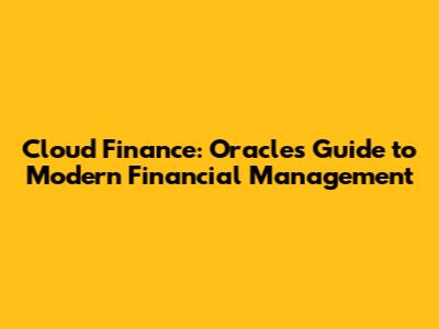 Cloud Finance: Oracle's Guide To Modern Financial Management