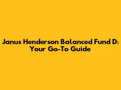 Janus Henderson Balanced Fund D: Your Go-To Guide