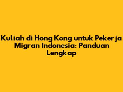 Kuliah Di Hong Kong Untuk Pekerja Migran Indonesia: Panduan Lengkap