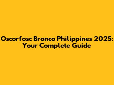 Oscorfosc Bronco Philippines 2025: What You Need To Know